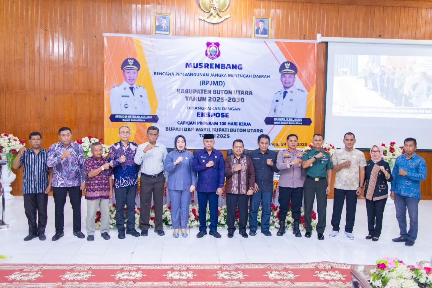 LENSASULTRA.COM-Bupati Buton Utara (Butur) Afirudin Mathara, SH.,MH. membuka kegiatan Musyawarah Perencanaan Pembangunan Daerah dalam rangka Penyusunan Rencana Pembangunan Jangka Menengah Daerah (RPJMD) Kabupaten Buton Utara Tahun 2025-2029 yang dirangkaikan dengan Ekspose 100 Hari Kerja Bupati dan Wakil Bupati Buton Utara Tahun 2025, di Aula Pappeda Buton Utara, Kamis (24/7/2025).