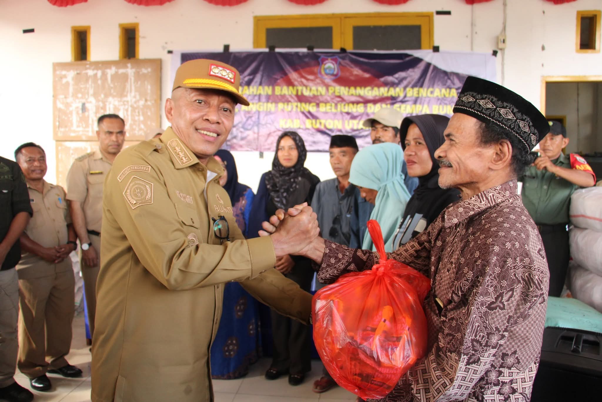 “Ditengah himpitan ekonomi akibat pemangkasan anggaran disana sini, pemerintah Daerah tetap memprioritaskan pembangunan yang berskala prioritas, terutama program bantuan kepada masyarakat yang terdampak bencana”. Ujar Bupati Butur.
