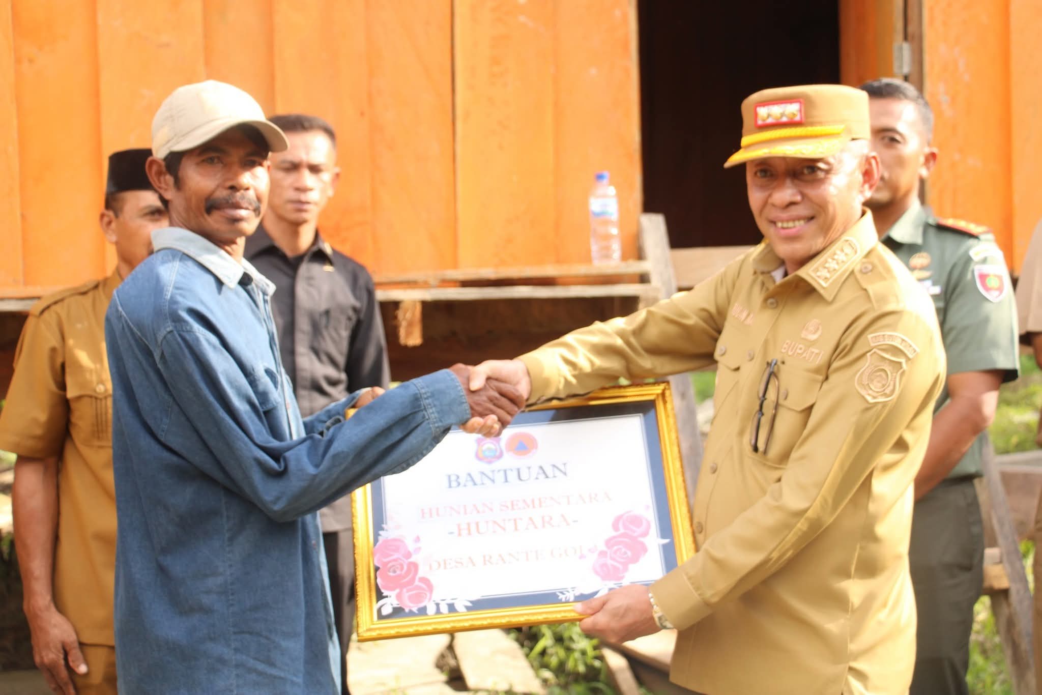 Selain itu, di Desa Rantegola, Afirudin Mathara didampingi Dandim 1429 Butur Letkol Inf. Acuk Andrianto, SE, bersama dinas terkait dan Tripika Bonegunu, menyerahkan Bantuan Hunian Sementara (Huntara) kepada salasatu KK atas nama Hamsir yang rumahnya hanyut terbawa banjir