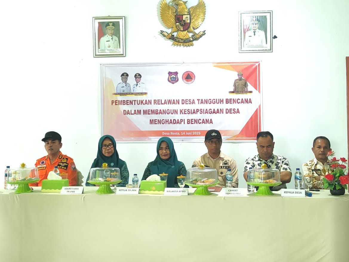 LENSASULTRA.COM-Ketua Tim Penggerak Pemberdayaan Kesejahteraan Keluarga (TP. PKK) Kabupaten Buton Utara (Butur) Suhaemi Sudia Afirudin, S.Pd., menghadiri acara Pembentukan Relawan Desa Tanggap Bencana di Desa Ronta Kecamatan Bonegunu. Sabtu, 14 Juni 2025