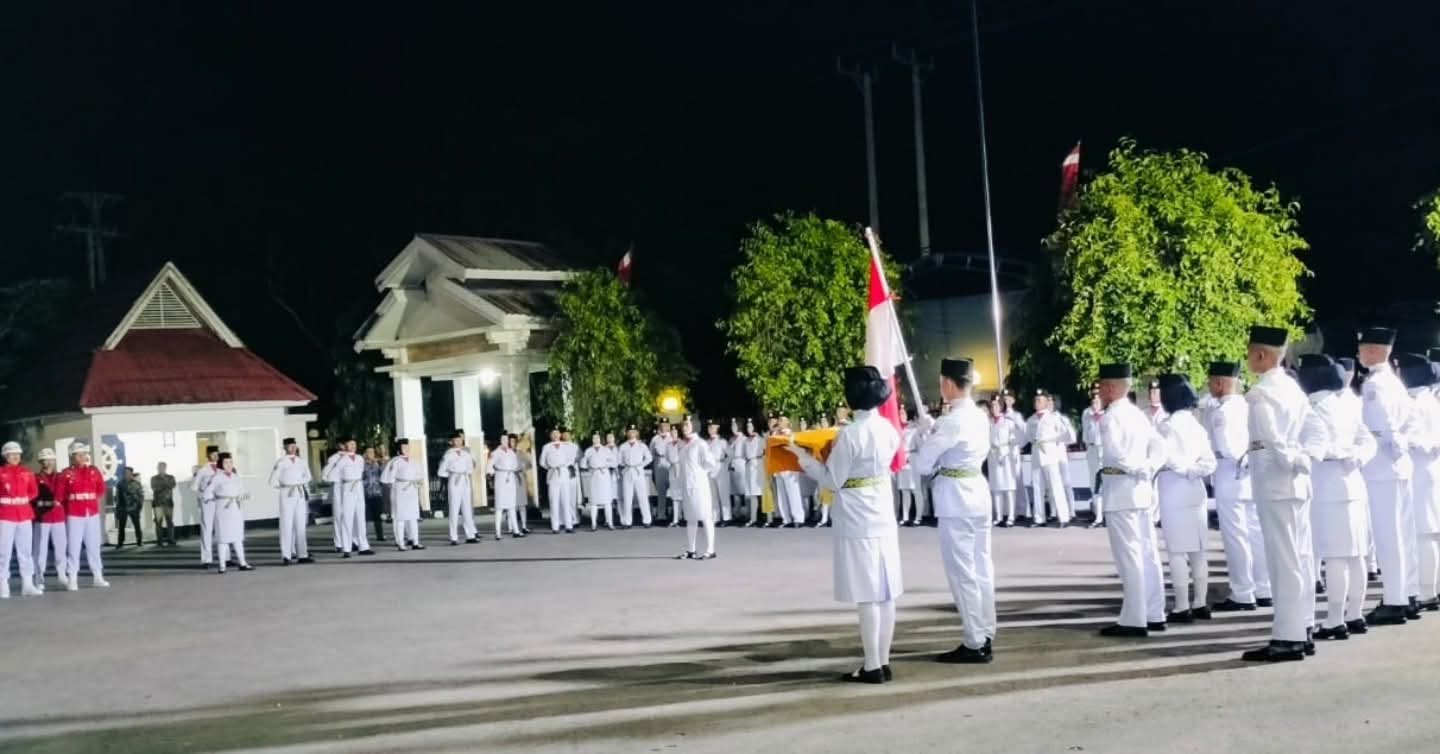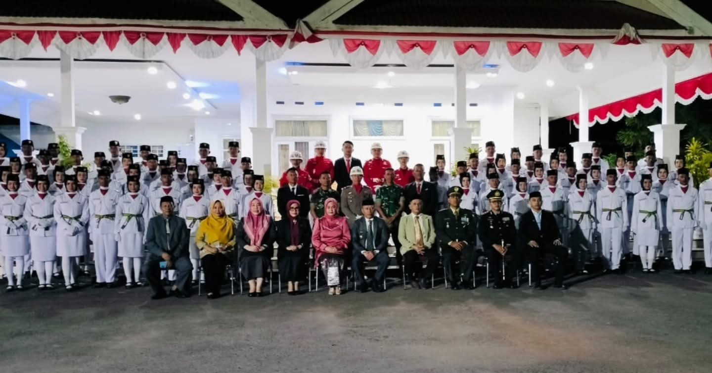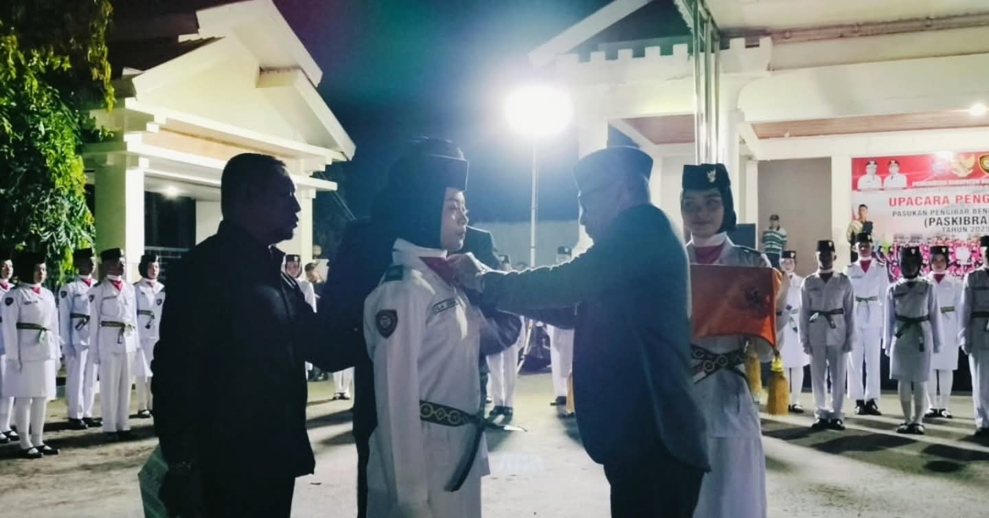 LensaSultra.com-Bupati Buton Utara (Butur) Afirudin Mathara, SH.,MH. Resmi mengukuhkan Pasukan Pengibar Bendera Pusaka (Paskibraka) duplikat Merah Putih Tingkat Kabupaten Buton Utara Tahun 2025, di pelataran Rujab Kamali Bupati Kecamatan Kulisusu, Jum’at malam (15/8/2025), Pukul 20.00 WITA.