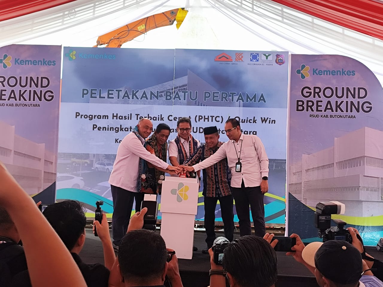Kehadiran, orang nomor satu di Kementerian Kesehatan di Lipu Tinadeakono Sara itu agenda ground breaking pembangunan Rumah Sakit Umum Daerah (RSUD) Tipe C melalui Program Hasil Terbaik Cepat (PHTC) peningkatan kualitas pelayanan kesehatan.
